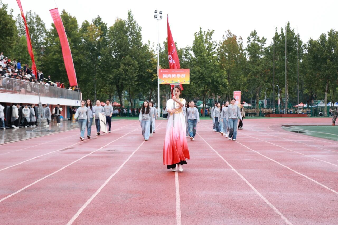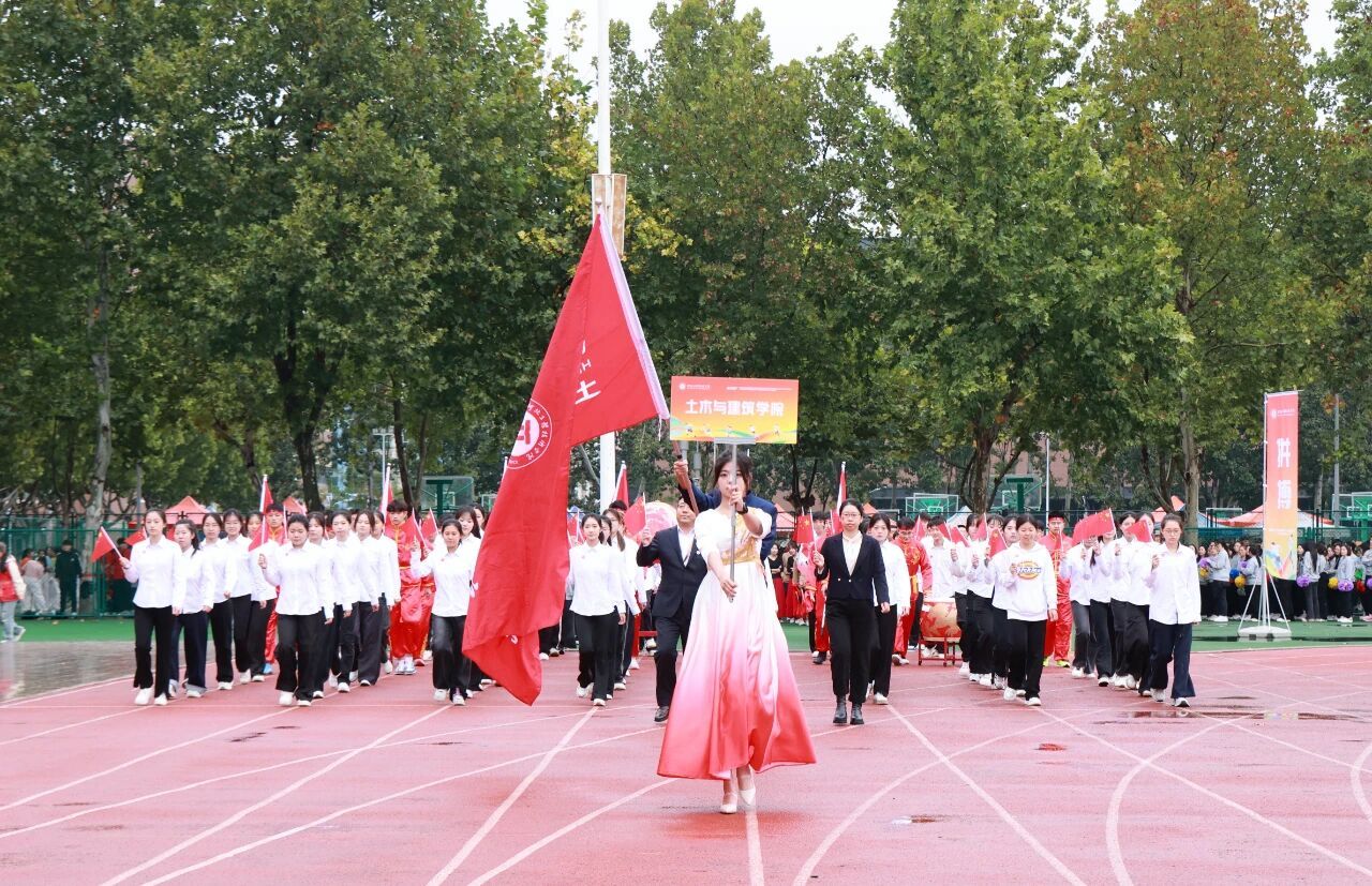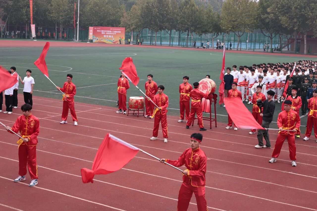 开幕式在激昂的《运动员进行曲》中正式开始。国旗护卫队率先入场,他们步伐铿锵,身姿挺拔,目光如炬,展现了我校国旗队庄严威武的气势。紧随其后的是校旗方阵与各学院运动员代表方阵,他们精神抖擞、意气风发,以掷地有声的口号和各具专业特色的表演,展现了河工人昂扬进取的精神风貌。由学校教职工代表组成的教职工方队步伐沉稳、神采奕奕,展现了新时代教育工作者笃行不怠的使命担当与育人风采。
