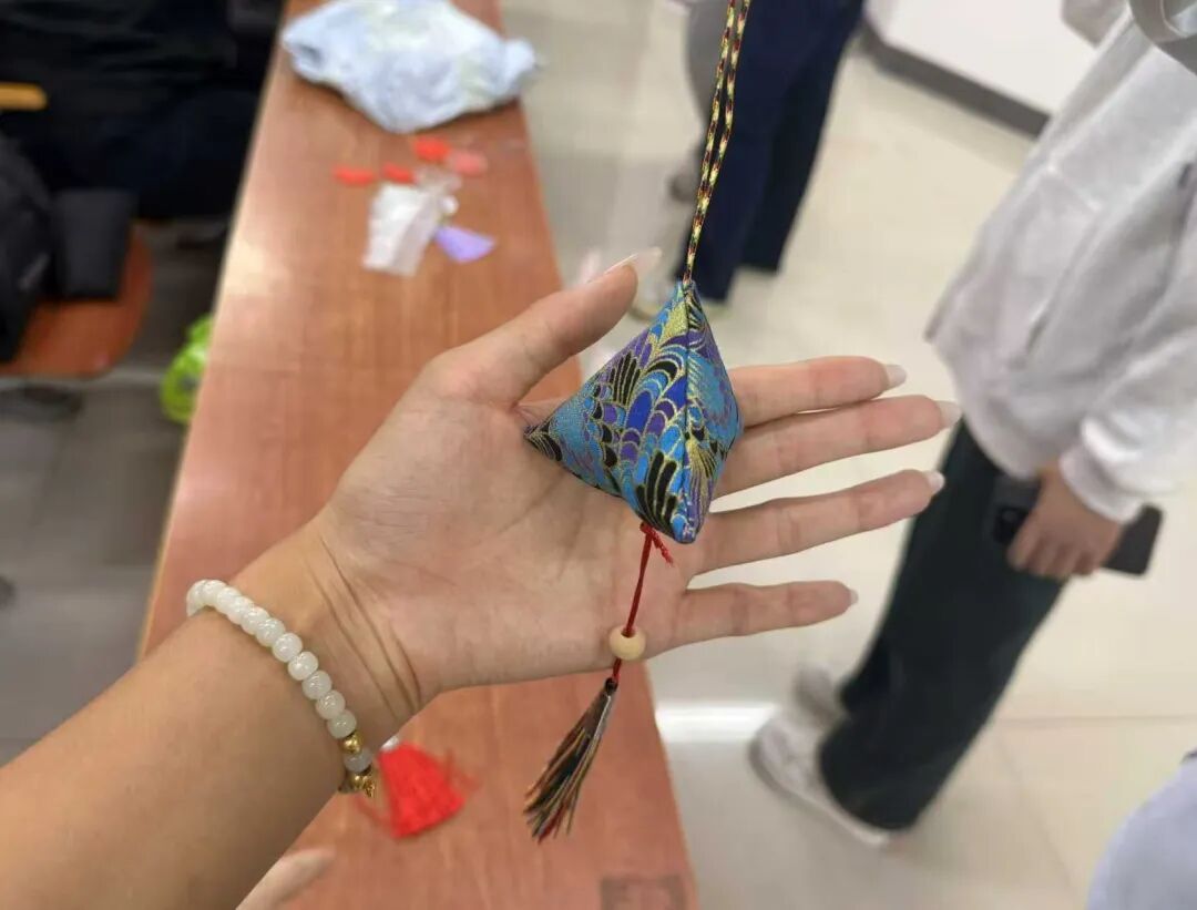 如今,那些承载着心意与古韵的茱萸香囊,或挂在同学们的书包上,或送到亲人手中,它们不再只是一件手工艺品,更成了校园里流动的文化符号,诉说着青年学子对传统文化的热爱,对家国的深情。