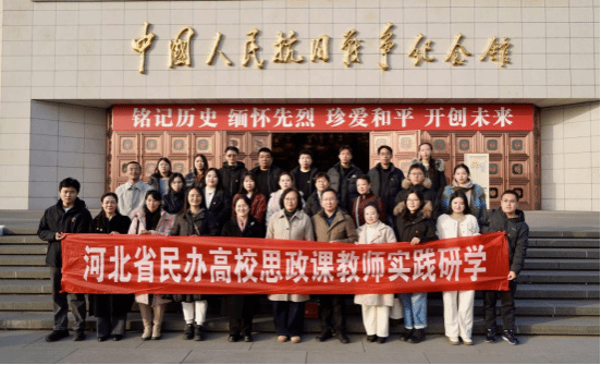为深入贯彻落实习近平总书记关于“大思政课”建设的重要指示精神,推动公办与民办高校思政教育资源共享、协同发展,11月29日,我院教师代表张宁、田晓红参加了由河北经贸大学马克思主义学院组织的实践教学活动,赴卢沟桥及中国人民抗日战争纪念馆重温抗战精神。本次活动通过实地研学、现场教学、研讨交流等形式,为思政课教师提供了鲜活的教学素材与创新思路,为思政教育注入了强大精神动能。