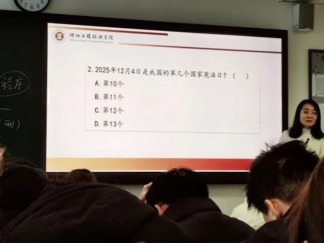 举办知识竞赛,激发学习热情。梁伟贤、岳会丹等老师精心组织的宪法知识竞赛,内容广泛涵盖宪法知识、网络安全教育等重点领域,课堂上通过必答、抢答等丰富环节,充分激发了学生的学习积极性与主动性。现场气氛热烈高涨,有效提升了学习效果。