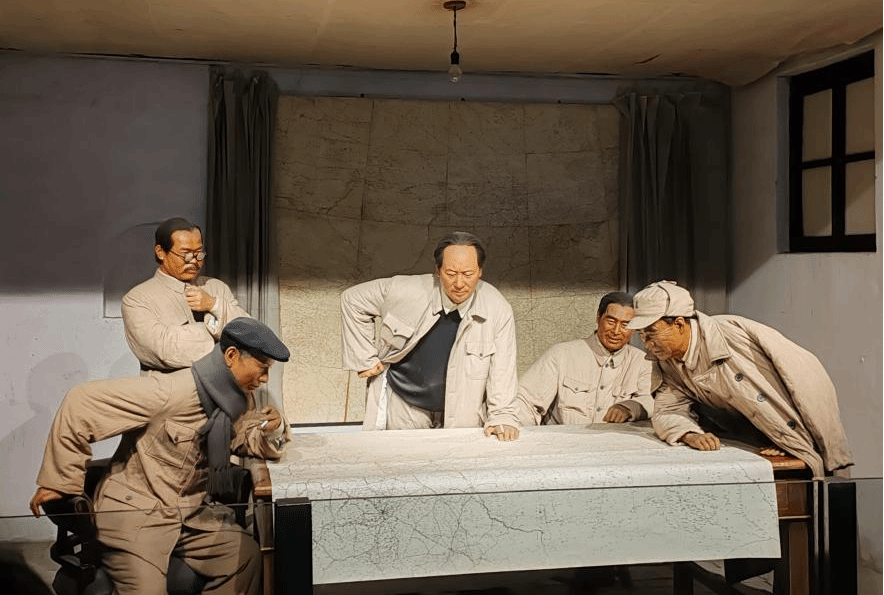 踏入西柏坡纪念馆,首先映入眼帘的是三大战役指挥场景的蜡像复原。昏暗的灯光下,毛泽东、周恩来等领导人围坐在简陋的木桌前,紧盯着地图,仿佛能听到电报机的滴答声和他们的讨论声。老师提到,当时党中央平均每天收发电报四五万字,以“电报指挥千军万马”,创造了战争史上的奇迹。这让我深刻体会到,革命胜利不仅依靠英勇的战士,更离不开运筹帷幄的战略智慧和高效团结的集体力量。