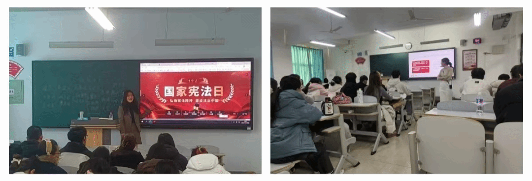 课堂上,教师们结合习近平法治思想,从宪法的历史渊源、核心内容、时代价值出发,用通俗鲜活的语言解读宪法条文,通过“国家发展与宪法修订”“公民权利与宪法保障”“校园生活与宪法规范”等贴合青年学生的案例,让抽象的法律概念变得可感可知。教师们着重强调,宪法不仅是写在纸上的条文,更是融入日常的行为准则,青年一代作为国家未来的建设者和接班人,既要认真学习宪法知识,明确自身的权利与义务,更要树立宪法意识、增强宪法观念,自觉成为宪法的忠实崇尚者、自觉遵守者和坚定捍卫者。