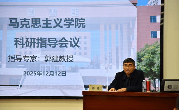 为持续深化教师科研能力,提升科研论证规范性与选题精准度,12月12日,全国优秀高校思想政治理论课教师、河北经贸大学郭建教授再次莅临马克思主义学院,开展进阶式科研专项指导。会议由副院长李洁主持,科研团队全体成员参会。本次指导聚焦选题精细化打磨、论证细节优化及个性化辅导,助力学院科研水平进一步提质增效。