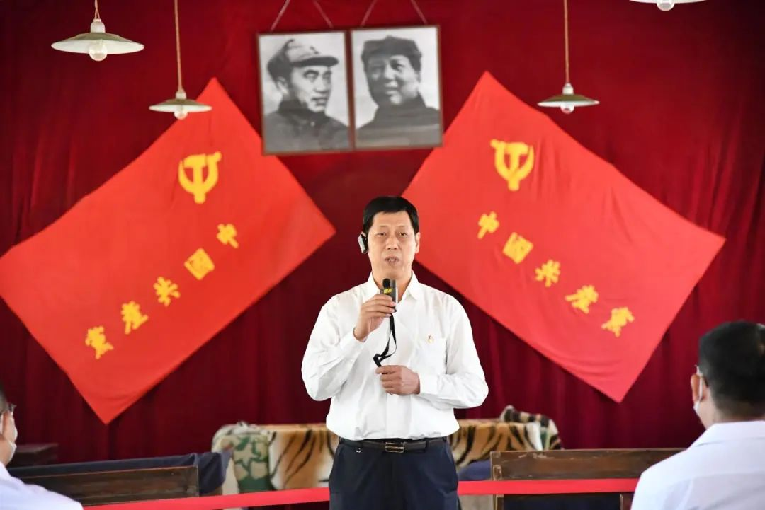在中共七届二中全会旧址,常新平书记为全体党员上了一堂简短而生动的党课,强调思想政治教育工作者要切实肩负践行传播知识、传播思想、塑造生命、塑造新人的时代重任,将“大思政课”善用之,充分发挥独特的红色资源优势,赓续红色血脉,让红色精神春风化雨,让红色基因润物无声,强化革命信仰,讲好思政内核,切实培根铸魂。